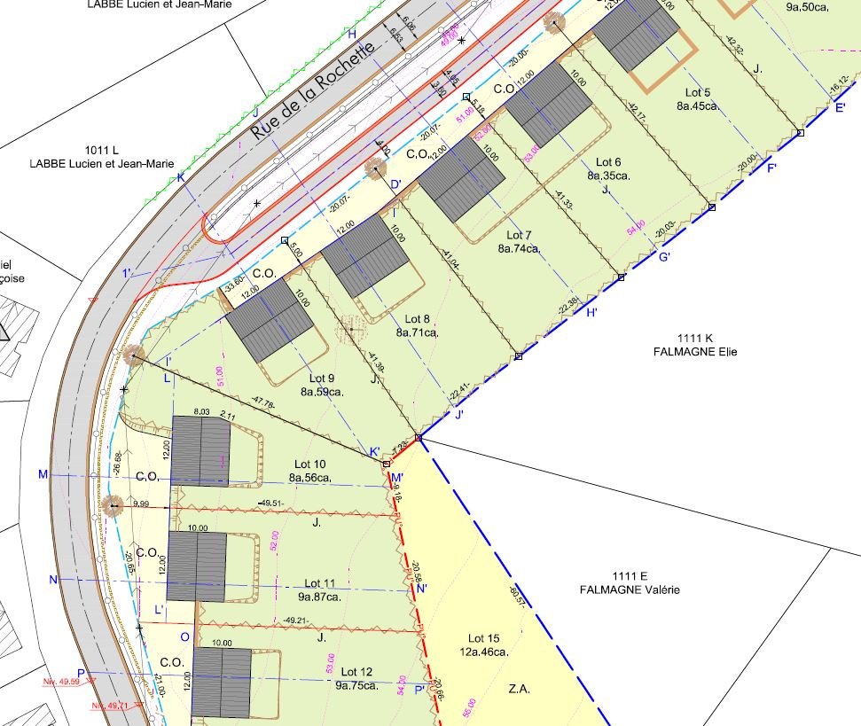 Profondeur parcelle : +- 43,45 à +- 45,48 mètresLOT 10 : 8a 56ca
