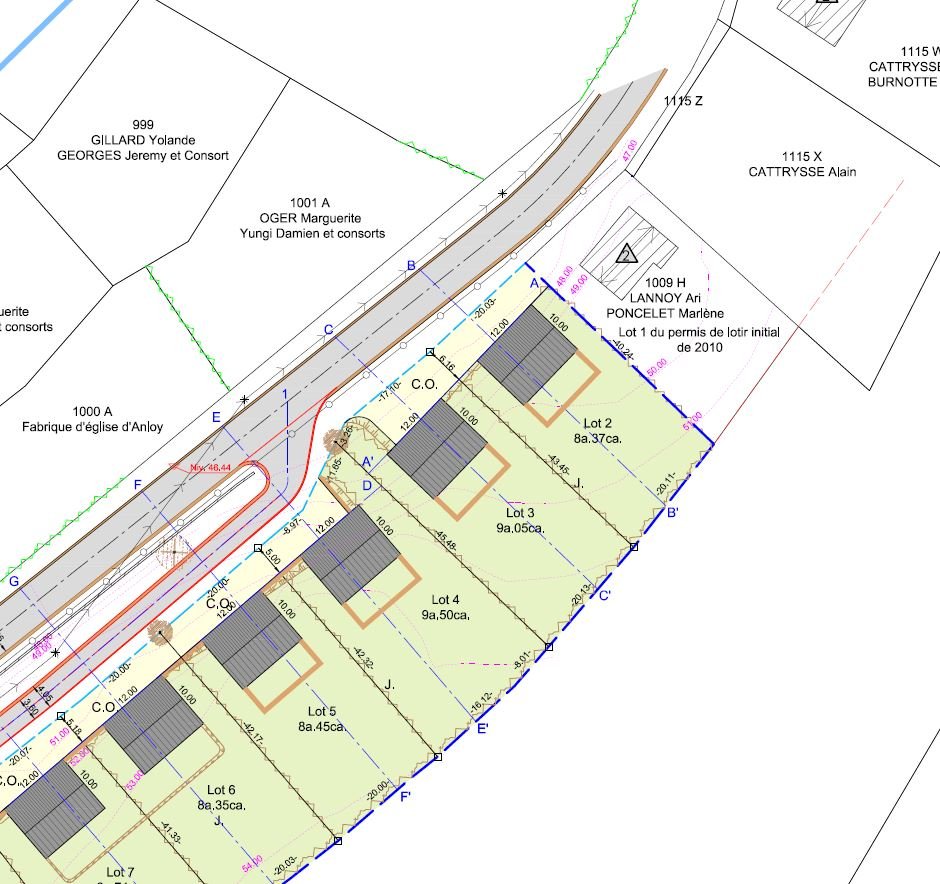Profondeur parcelle : +- 40,24 à 43,45 mètresLOT 3 : 9a 05ca