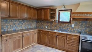 Leefruimte met schouw en uitgeruste keuken, badkamer (bad, lavabo, WC), stook- en wasruimte.
