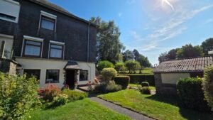 BASTOGNE: Hoekwoning in natuursteen met garage en tuin, nabij het centrum.