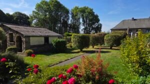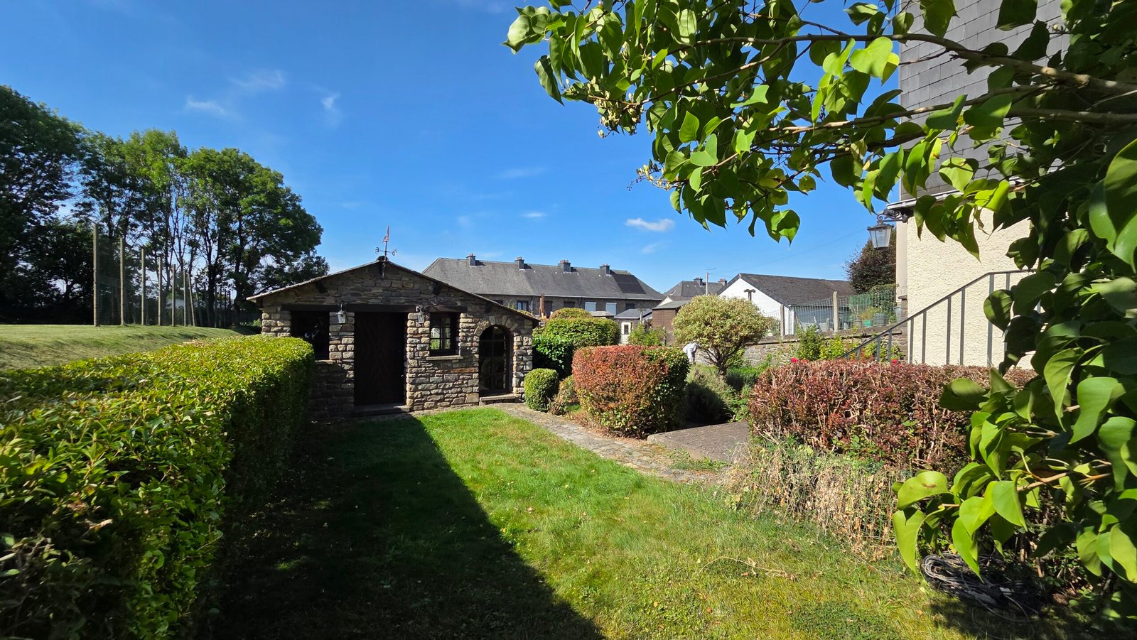 Charmante hoekwoning in natuursteen (+-130m² bewoonbare oppervlakte), met mooie zuid gerichte tuin, parking en garage, gelegen op wandelafstand van het centrum van Bastogne.