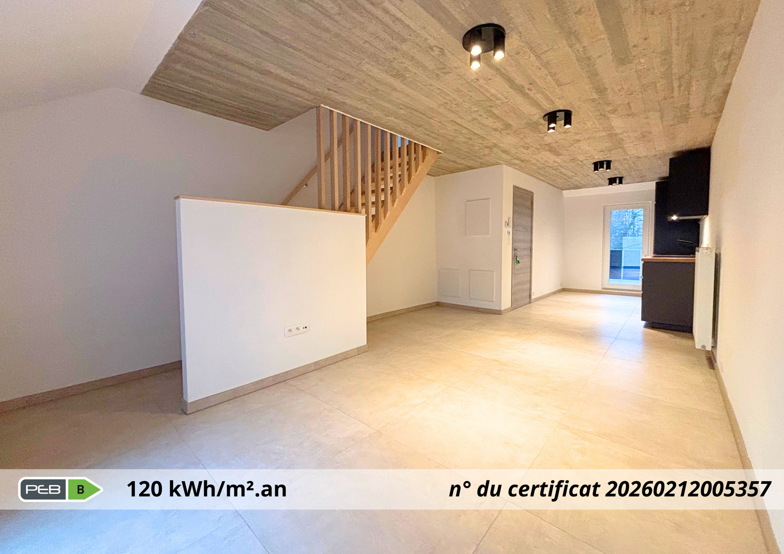- EPC: PEB : Classe B - Consommation spécifique d’énergie primaire : 120 kWh/m².an - N° du certificat : 20260212005357