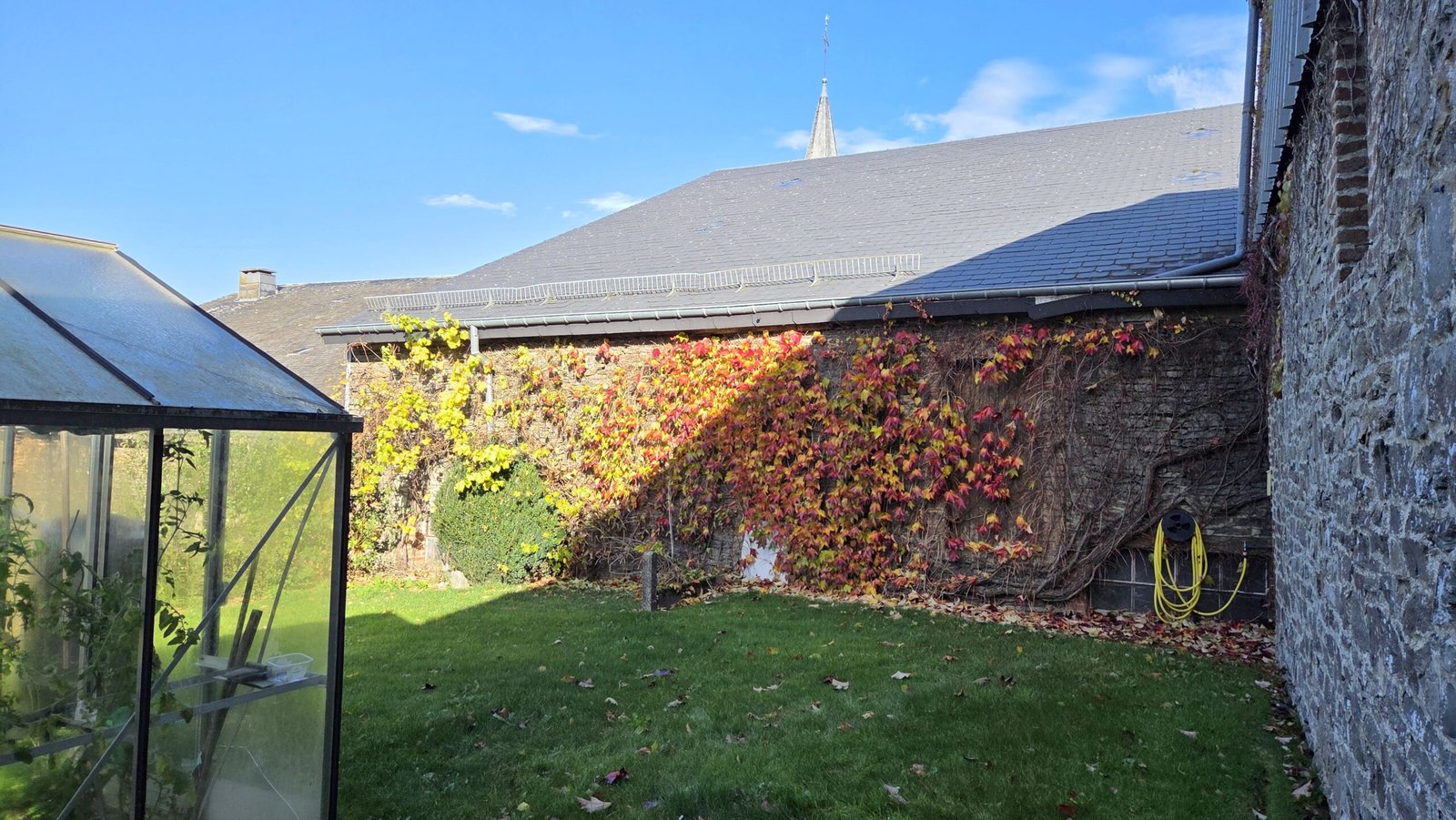Authentique maison de ferme en pierre de pays (+/-200m² habitables) avec dépendances, garage et jardin, sur un ensemble de 7 ares et 10 centiares.
