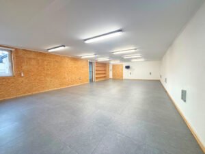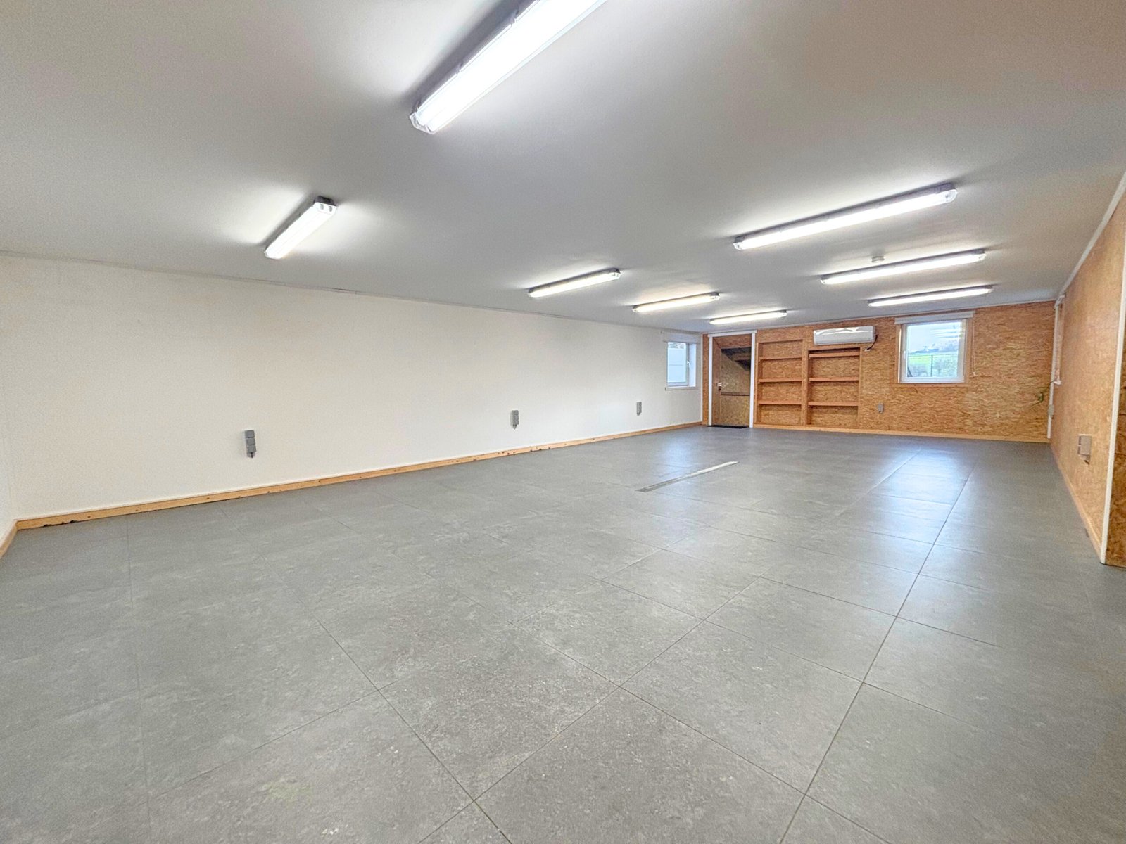 Grand bureau (+-60m²), espace commun avec kitchenette (+-18m²), WC et terrasse sur l’arrière.
