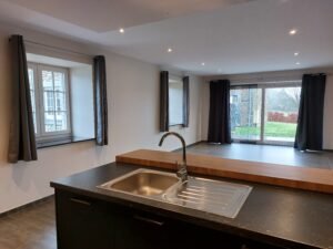 Agréable maison (2 chambres, +/- 140m² habitables) avec terrasse, située dans le beau village de Jéhonville.