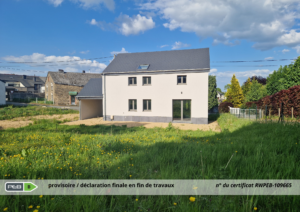 - PEB: PEB : nouvelle construction / déclaration finale à réaliser en fin de travaux. Référence du rapport PEB initial : RWPEB-127609