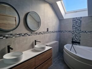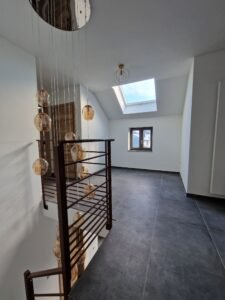 Hall avec coin bureau et WC séparé, salle de bains (bain d’angle, douche à l’Italienne et meuble avec double lavabo), 3 grandes chambres dont une avec dressing.Quelques renseignements complémentaires :