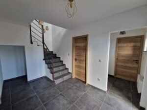 Hall d’entrée avec volée d’escalier et vestiaire, spacieux séjour avec coin cuisine (à installer) et large baie vitrée offrant un accès vers la terrasse et le jardin, buanderie/réserve/chaufferie avec sortie vers le carport, WC séparé, pièce évolutive (chambre, bureau, cabinet, …) et carport.