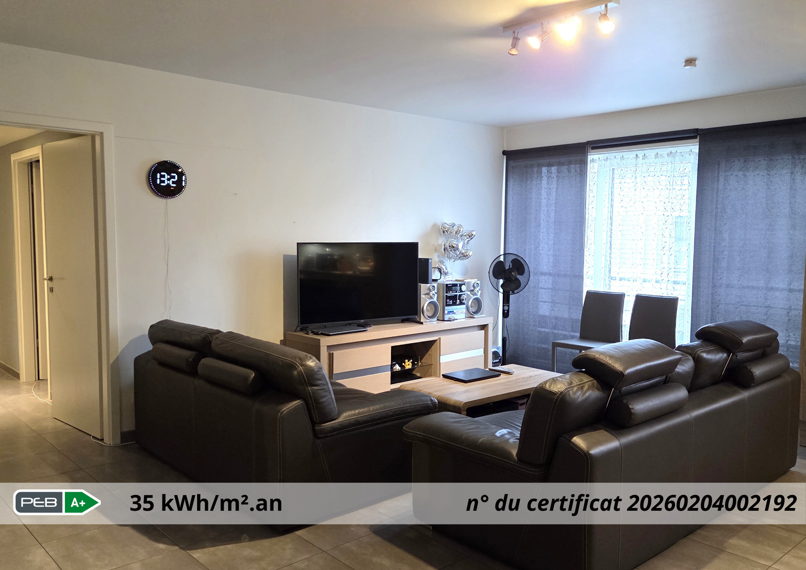 - EPC: PEB : Classe A+ - Consommation spécifique d’énergie primaire : 35 kWh/m².an - N° du rapport PEB : 20260204002192