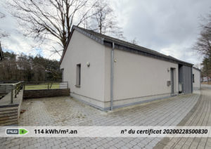 Consommation spécifique d’énergie primaire : 114 kWh/m².an