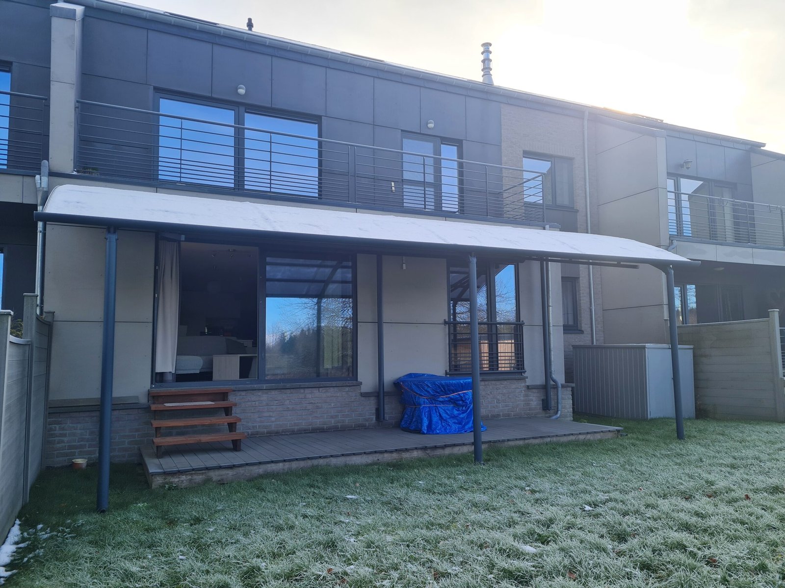 Cave privative (+- 9,92 m²) et emplacement de parking.Jardin privatif (+- 77m²) + terrasse et pergola avec banne solaire électrique.