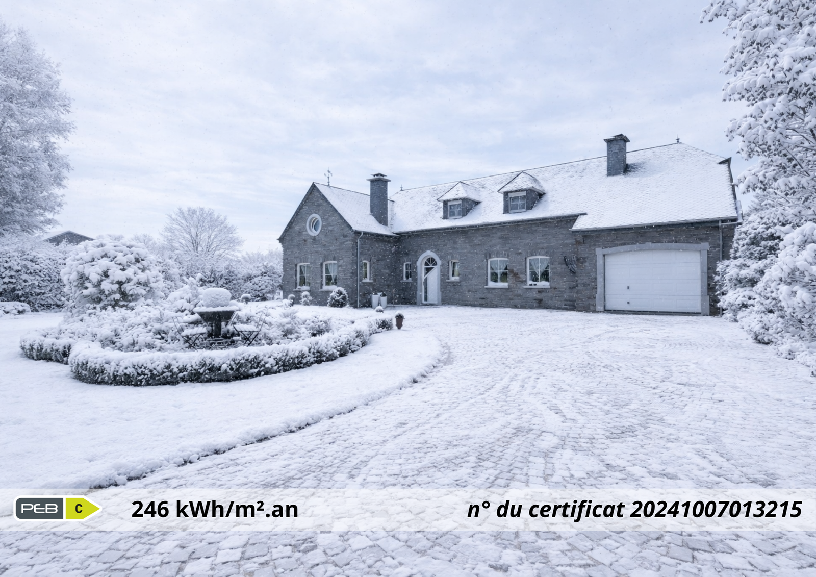 - PEB: PEB : Classe C - Consommation spécifique d’énergie primaire : 246 kWh/m².an - N° du rapport PEB : 20241007013215